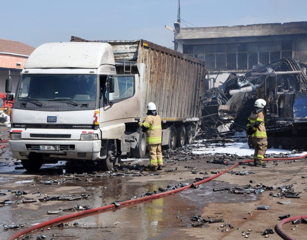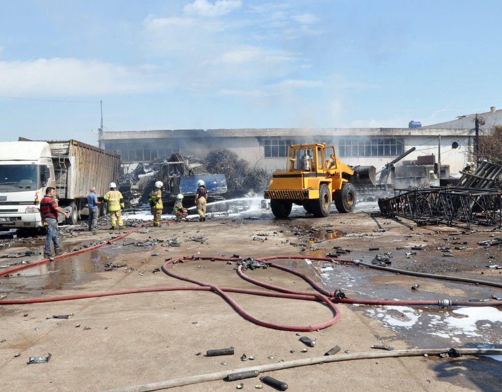 İzmir’in Bornova ilçesinde, hurdalıkta ilk belirlemelere göre gaz sıkışmasından dolayı yangın çıkarken iki işçi hafif yaralandı.