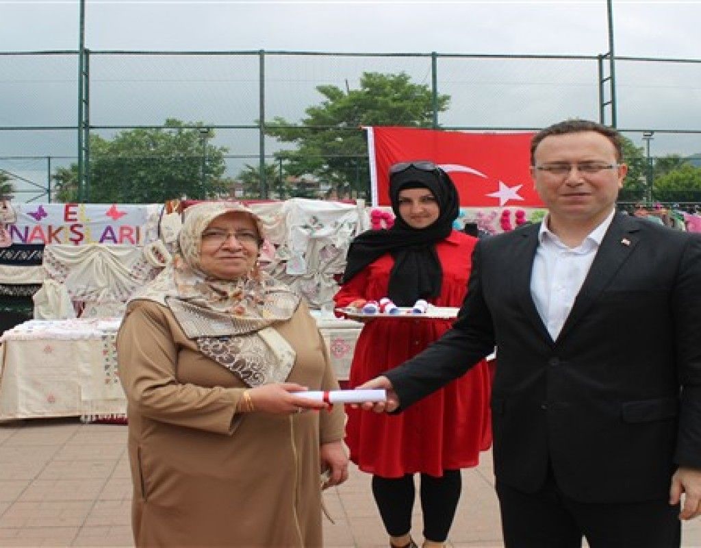 Mini define sunumu ve belge töreninin ardından program, açılış kurdelesinin kesimi ile devam etti. Açılan yıl sonu sergisinde, el sanatları ve yöresel ürünler vatandaşlara sergilendi.