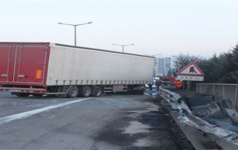 Kazada yaralanan olmazken, tırın devrilmesi sebebi ile yolda uzun araç kuyrukları oluştu.
