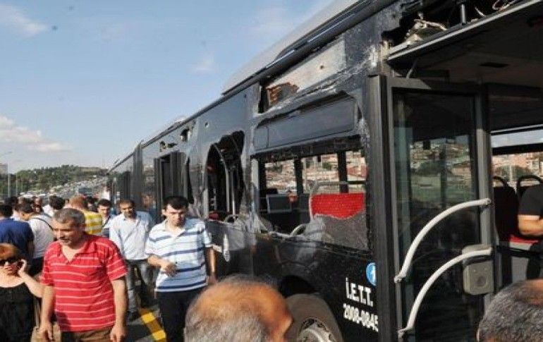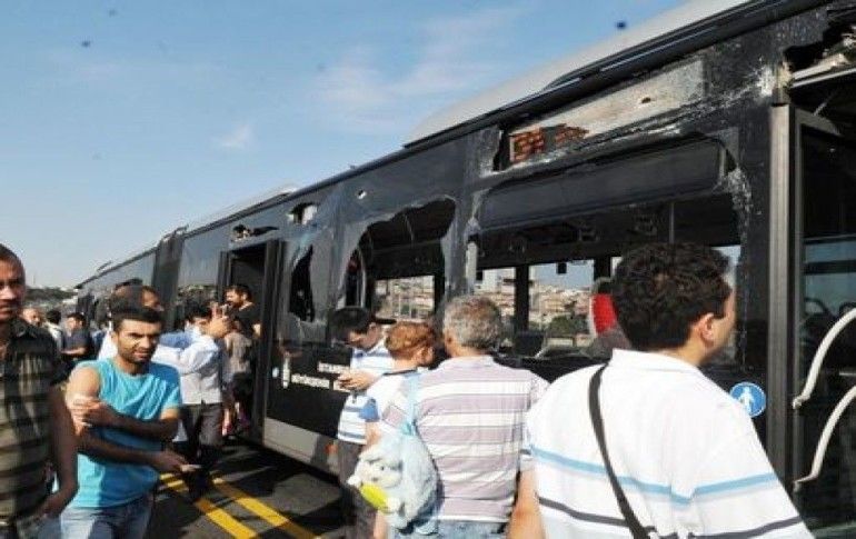 Haliç Köprüsünde iki metrobüsün çarpışması sonucu araçların camlarının patlamasıyla 5 yolcu yaralandı