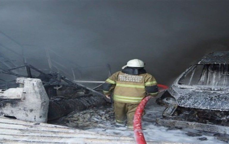İZMİR / AA - Işıkkent Dökümcüler Sitesi'nde bulunan bir ayakkabı imalathanesinde sabah saat 8.30 sıralarında henüz belirlenemeyen bir nedenle yangın çıktı.