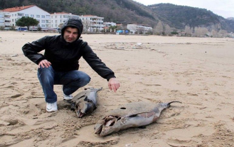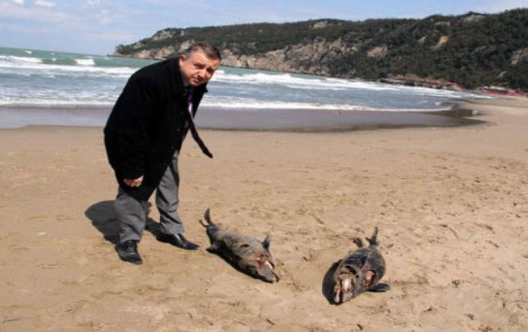 Bartın'ın İnkum tatil köyünde onlarca yunus balığı ölü halde karaya vurdu. Yunus balıklarının sırtlarındaki kurşun delikleri, yunusların katledildiğini ortaya çıkarttı