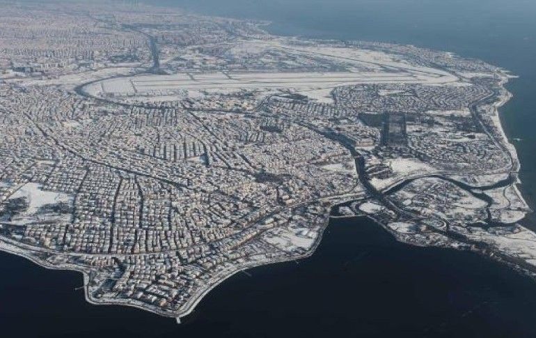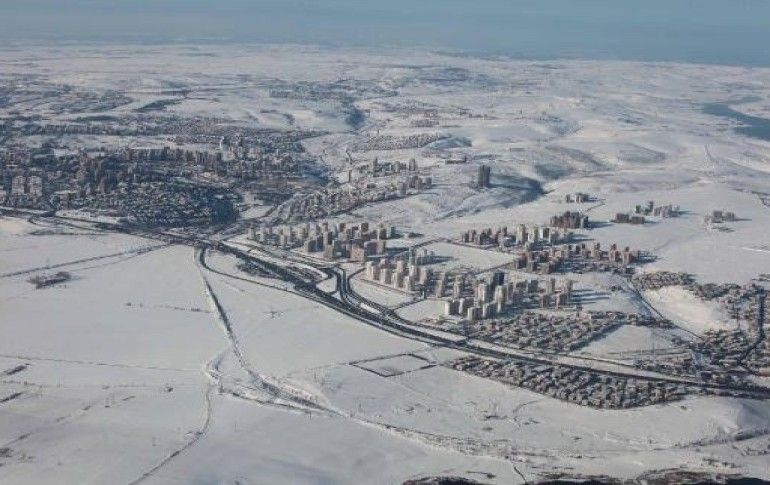 Karın etkisini yitirdiği bugün, kameraya havadan yansıyan görüntülerde beyaz örtünün çatıları ve yol kenarlarını kaplamış olduğu görülüyor.