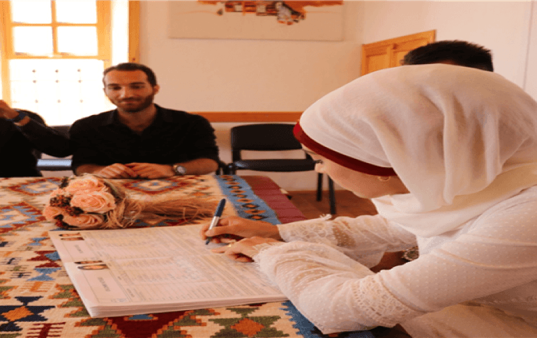 Türkiye’nin birçok yerinde evlilik tarihlerinin özel bir gün olmasını isteyen çiftler nikah salonlarına akın ederken, Van’ın Tuşba ilçesinde de 09.09.2019 tarihini seçen 30 çift, nikah masasına oturdu. Geleneksel Van Evleri Mahallesi’nde Yazı İşleri Müdürlüğü bünyesinde oluşturulan Nikah Memurluğunda 09.09.2019 yoğunluğu yaşanırken, nikah memuru Burhan Gencer tarafından kıyılan nikahlarla çiftler dünya evine giriyor.