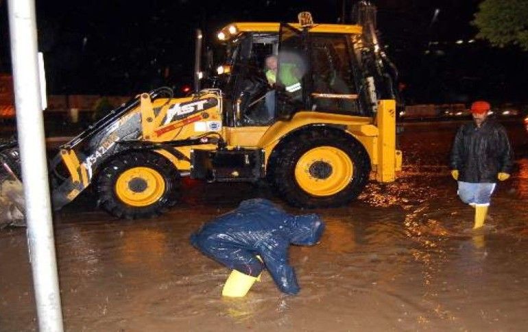 Adıyaman’da etkili olan şiddetli yağış caddeleri göle çevirdi.
